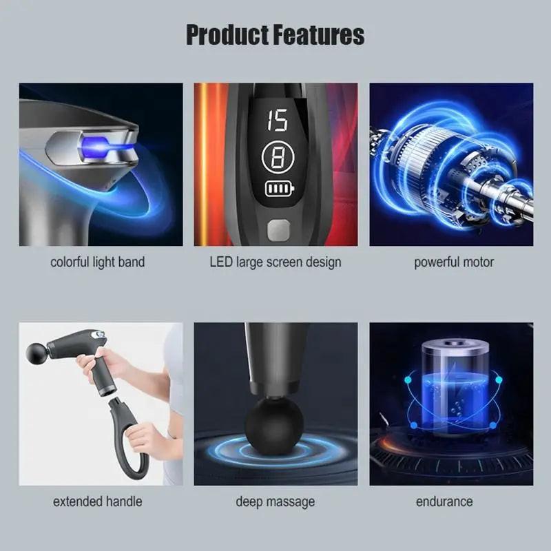 Ce pistolet de massage se distingue par sa conception portable. Cela signifie que vous pouvez l'emporter partout avec vous, que ce soit au bureau, à la salle de sport ou même en voyage. Son poids léger et sa taille compacte le rendent facile à utiliser, alors n’hésitez pas à l’intégrer dans votre routine quotidienne. Vous pourrez ainsi bénéficier des bienfaits du massage à tout moment, et cela, où que vous soyez.
